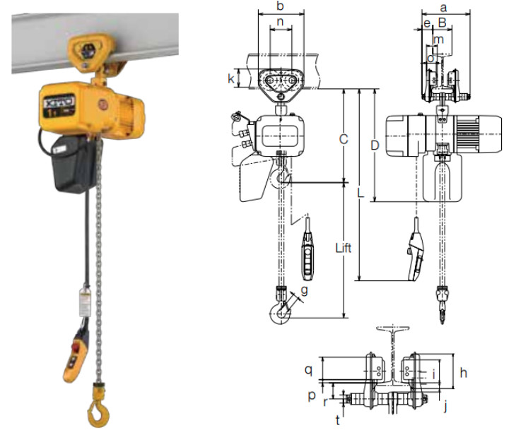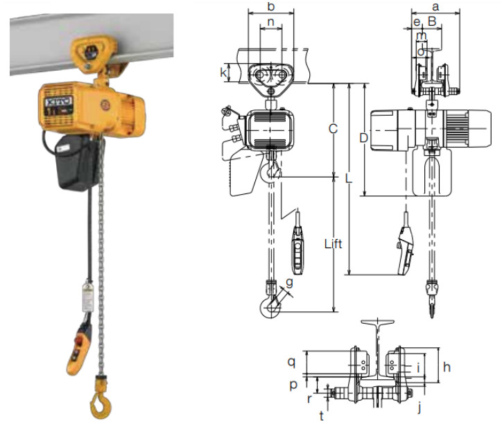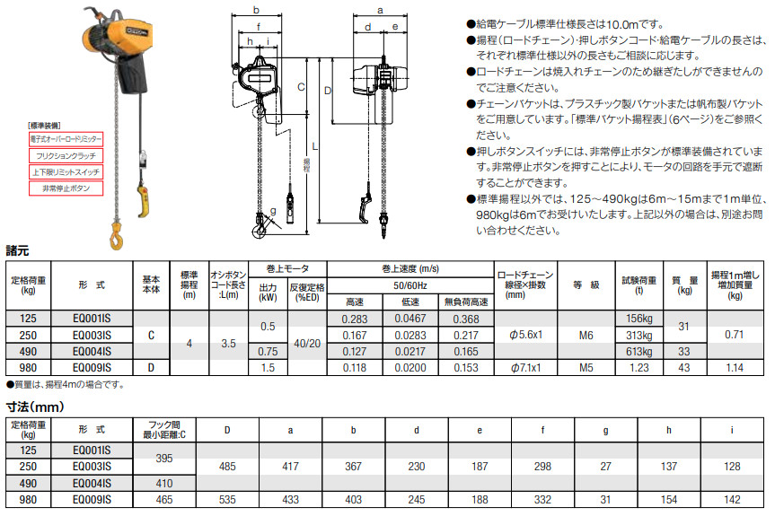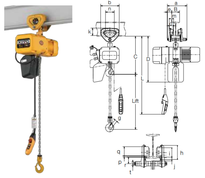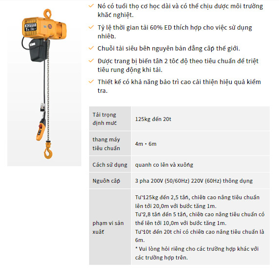Palăng xích điện EQ với thiết kế đơn giản thân máy nhẹ và nhỏ gọn được trang bị tiêu chuẩn biến tần 2 tốc độ và đặc biệt chú trọng về độ an toàn và độ bền.