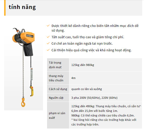 Palăng xích điện ED là một sản phẩm có độ tin cậy cao được lựa chọn trên toàn thế giới. Có nhiều loại để khách hàng lựa chọn: