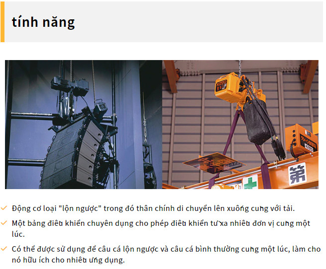 Palăng xích điện loại đảo ngược lý tưởng để thiết lập thiết bị sân khấu, trường quay.