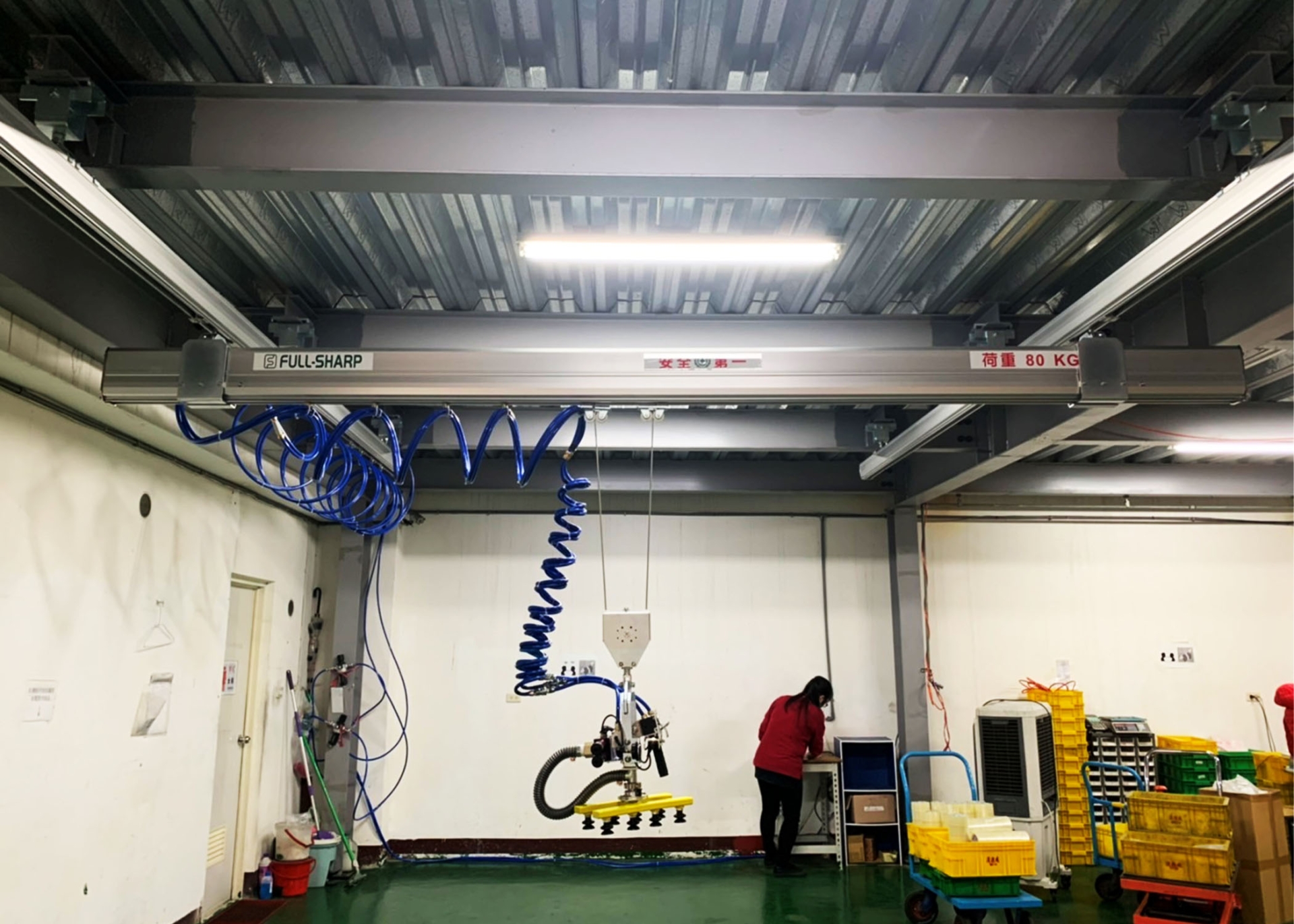 - Cầu trục cho cho việc nâng hạ tấm sắt, tấm kính