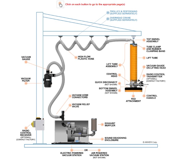 ★ Thiết bị nâng hạ hút chân không Anver cần sự hỗ trợ nâng vật của cầu trục (bằng đầu hút vật chân không) để gắp, đỡ, nâng, hạ vật phụ tải. Mọi động tác trên chỉ cẩn 1 người điều khiển qua hệ thống đầu hút chân không mà không sợ làm hư hỏng bề mặt hoặc mép biên của sản phẩm khi vấu kẹp như nâng hạ bằng tay khác. Quạt gió tính năng cao là động lực tạo chân không cung cấp cho ống treo chính sẽ nâng hạ phụ tài vật. Ngay cả khi nguồn điện cung cấp cho quạt gió bị ngắt thì thiết bị mâm quay 360o ở đỉnh thiết bị cũng điều khiển mạch hồi, từ từ hạ vật nâng xuống đất.