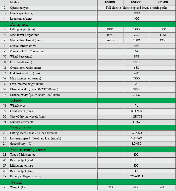 Tính năng nổi bật của xe nâng điện tự leo FS1100/1300/1500